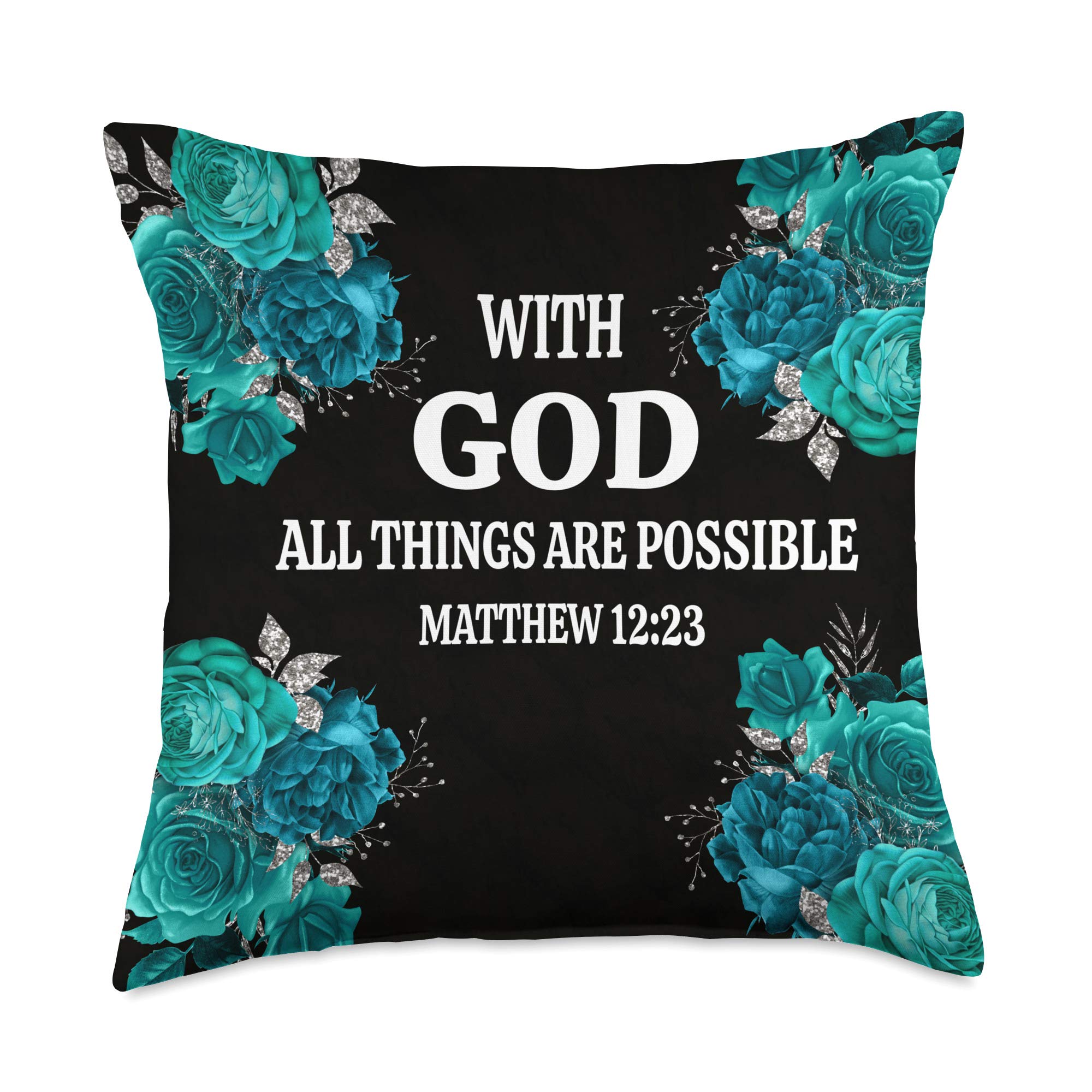 Amazon Com Faith Bible Verses Christian Quotes With God All Things Are Possible Matthew 19 23 Bible Verse Throw Pillow 18x18 Multicolor Home Kitchen